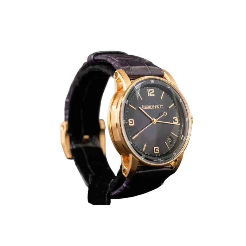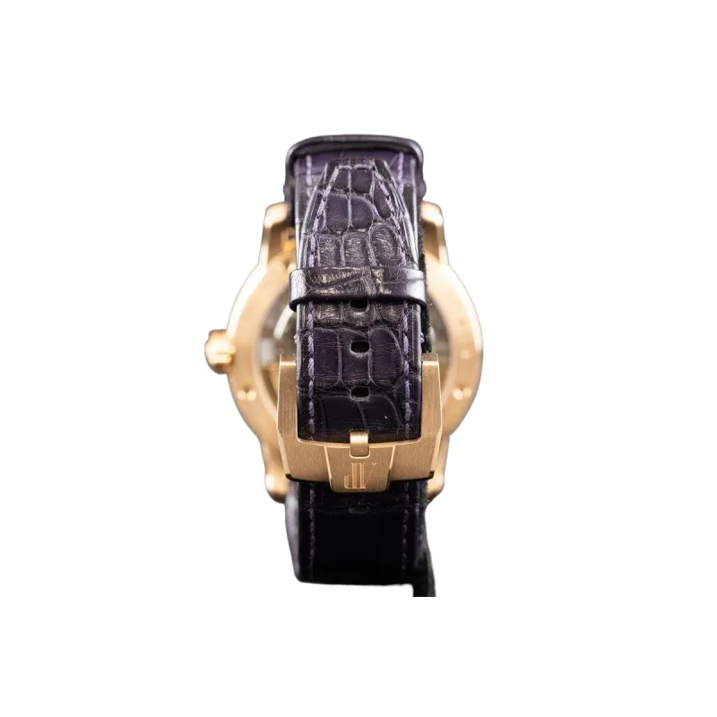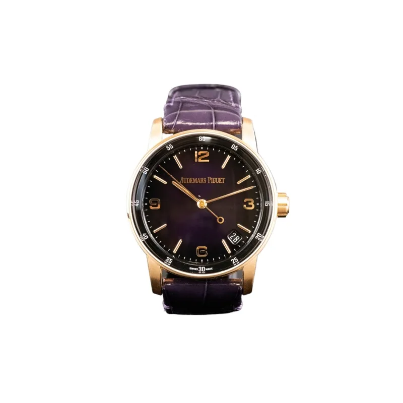 Audemars Piguets’ Code 11.59 features a 41mm x 32 mm round shaped case in 18ct rose gold. It features a rich lacquered smoked purple dialwith 18ct rose gold applied hour-markers and hands and a 24ct rose gold applied logo in galvanic growth. It comes on an interchangeable hand-stitched, large square scale, purple alligator strap with an 18ct rose gold pin buckle.