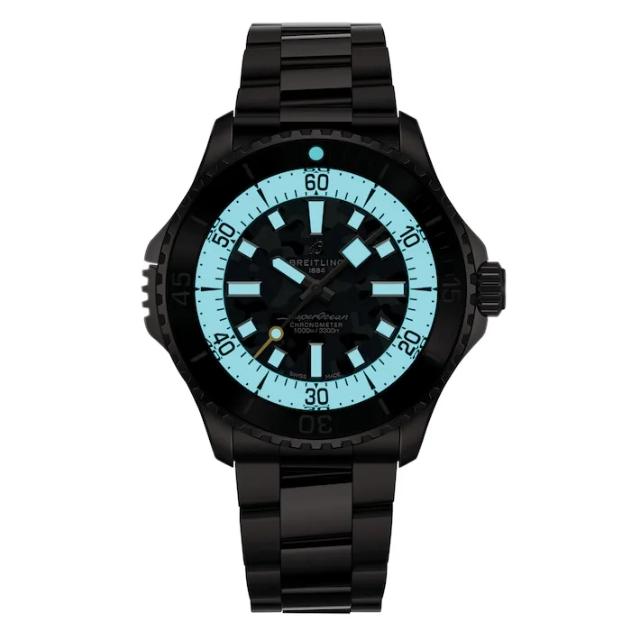 Powered by the Breitling 10 calibre movement, this performance-focused timepiece is water resistant to 100 bar (1000 metres) and has a 42-hour power reserve.