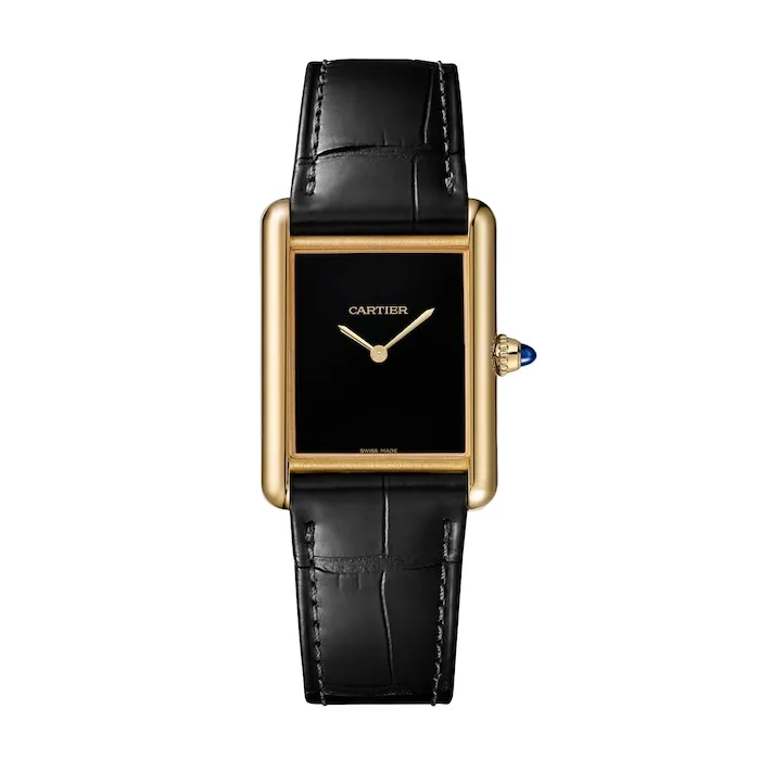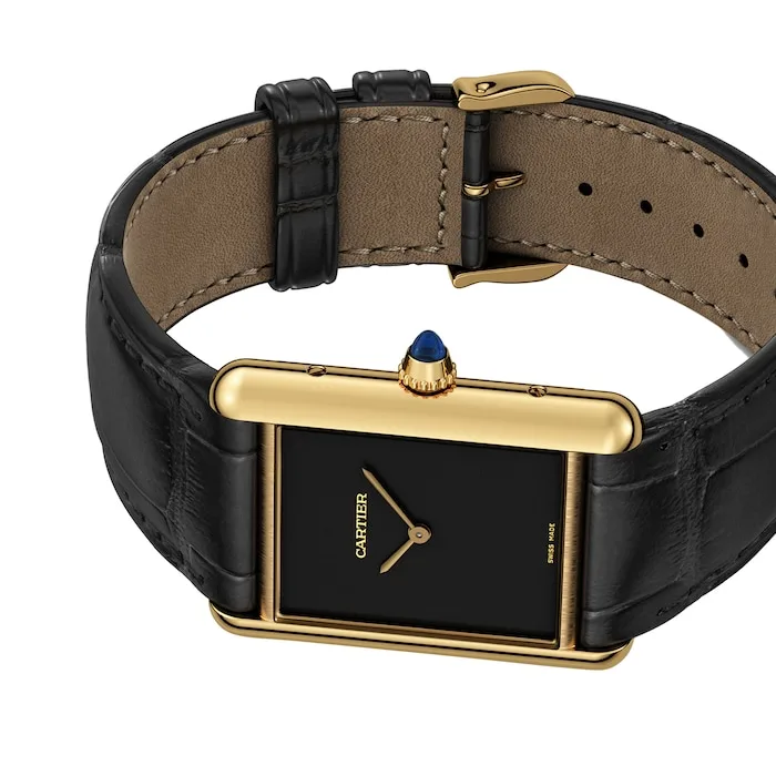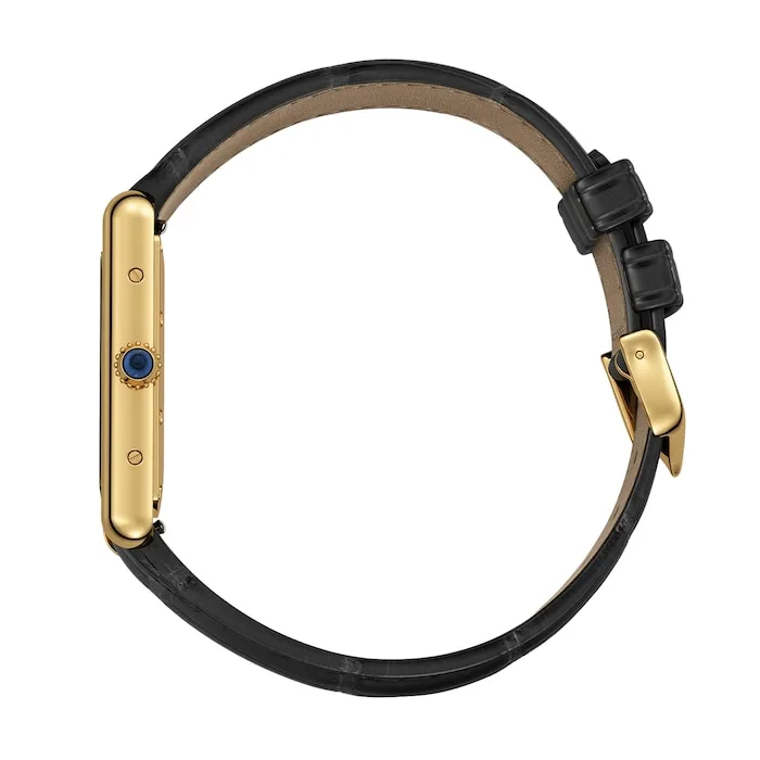 Complemented by a semi-matte black alligator-skin strap with an ardillon buckle in yellow gold, this watch exudes an elegant yet enduring charm. Powered by a Manufacture mechanical movement with manual winding, the Tank Louis Cartier guarantees precise timekeeping and is water resistant up to 3 bar (30 metres).