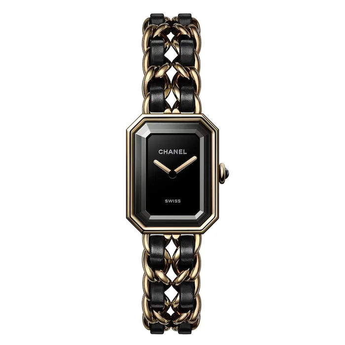 The case of the Premiere watch reflects the octagonal design of the Place Vendome, a symbol of architectural perfection and timelessness that resonates with the resonates with the femine charm of this watch. This ‘Premiere Rock’ addition to the collection is crafted in a steel polished case and hands. The dial is displayed with the black lacquer colouring finished with the crown in ogive cut onyx. The ‘rock’ inspiration to this design is showcased in the steel chain bracelet, interwoven with a black leather ribbon. Swiss-made with quartz movement. Water resistant to 30 metres. Size Medium – wrist circumference is 143mm- 155mm. Flat Dimension 165mm