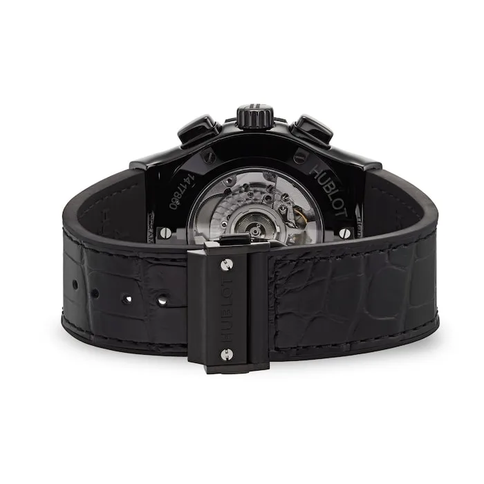 Incredible power and precision are provided by the HUB1155 self-winding skeleton chronograph movement with a 42-hour power reserve, while water resistance to 5 bar (50 metres) further enhances the performance of this striking timepiece.