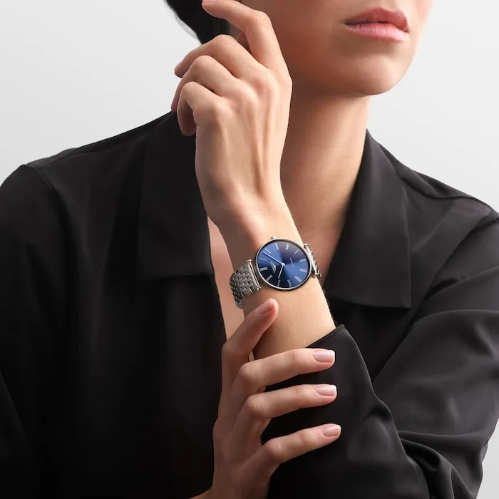 Where timeless elegance meets technical precision, the La Grande Classique de Longines epitomises sophistication. Its striking sunray blue dial, highlighted by painted Roman numerals and silver-polished hands, is beautifully protected by a scratch-resistant sapphire crystal.