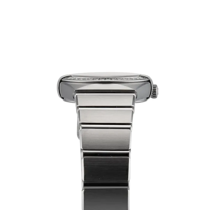 This beautiful, 25mm timepiece pairs a stainless steel case with a mono-rang bracelet.