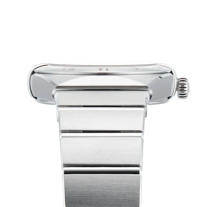 The charming, blush rose dial is striking with 18K white gold hands and hour markers, inspired by the skyline of New York city. With blush rose Roman numerals, the stainless steel bezel introduces an extra pop of colour, while the 4061 calibre movement delivers outstanding precision.