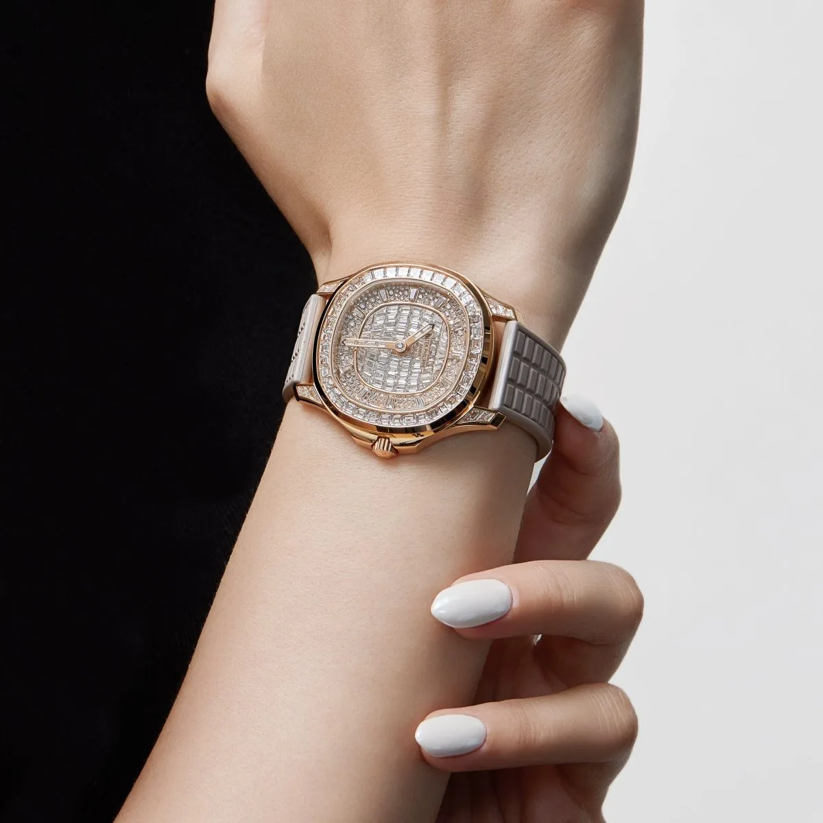The Patek Philippe Aquanaut Luce 5062/450R-001 ‘Haute Joaillerie’ in rose gold with diamond pave is a stunning example of luxury and craftsmanship. The rose gold case is adorned with exquisite diamonds, creating a radiant, high-end aesthetic that elevates the iconic Aquanaut design. The diamond pave dial adds an additional layer of opulence, making this timepiece a true statement piece. As a limited edition, it is highly sought after by collectors who appreciate exceptional craftsmanship and exclusivity in their luxury timepieces.
