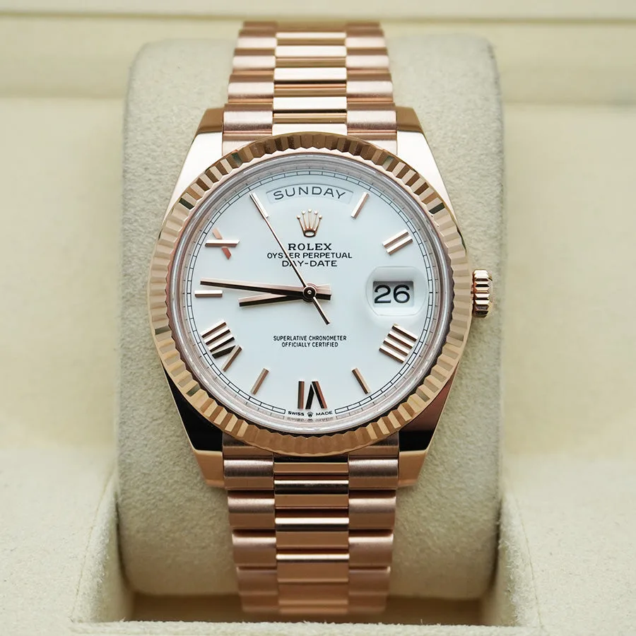Rolex Day-Date 228235 Rose Gold White Roman Dial